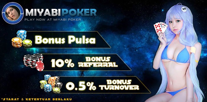 Miyabipoker memberikan bonus turnover mingguan terbesar poker online indonesia sebesar 0.5% setiap minggu nya, bandar ceme, capsa susun, dominoQQ, Omaha, Super 10.